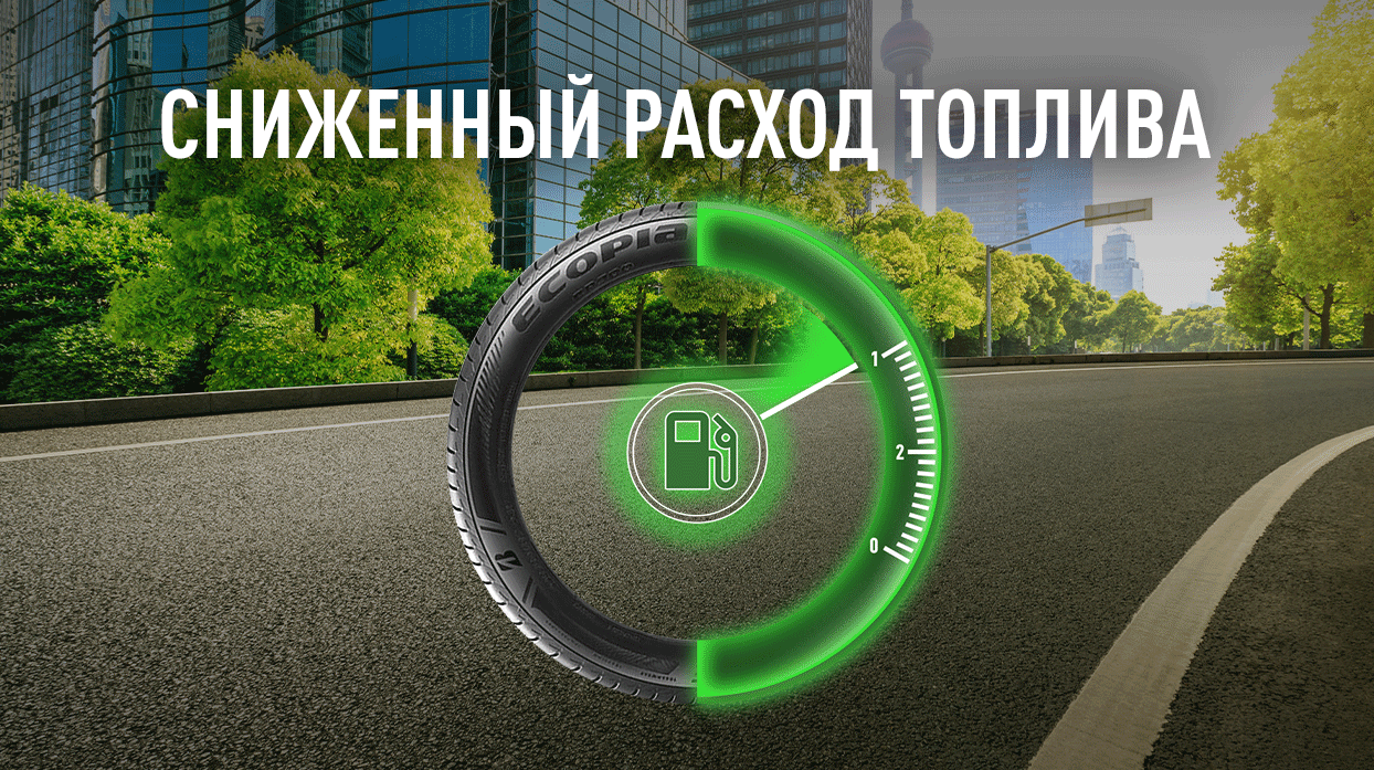 Автомобиль, оборудованный шинами Ecopia EP300, при полной заправке бака может проехать дополнительные 11,2 км по сравнению с результатом Ecopia EP200. А если сравнивать EP300 с обычными автошинами, то экономия может составить до 2 л топлива на каждый полный бак.